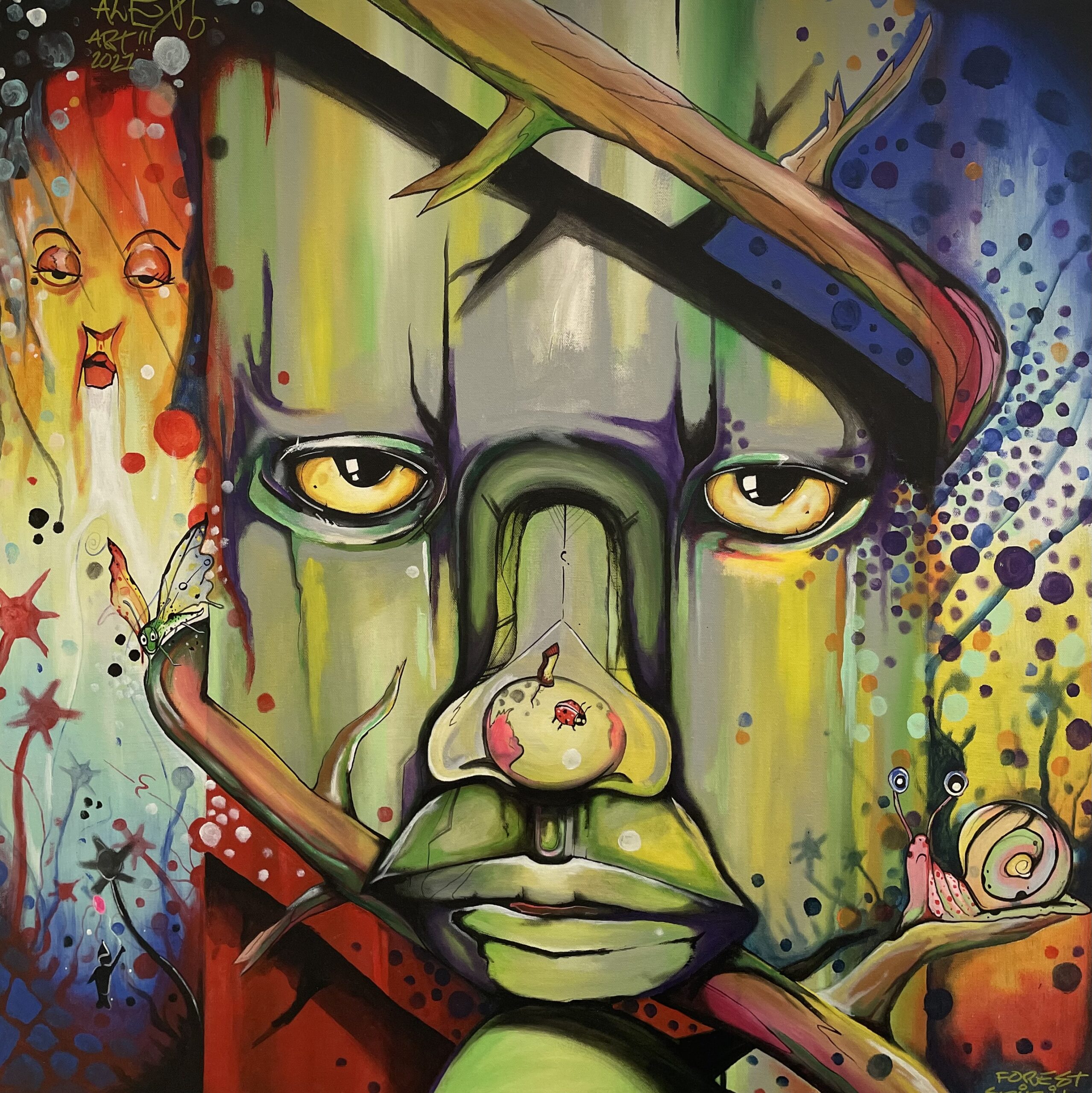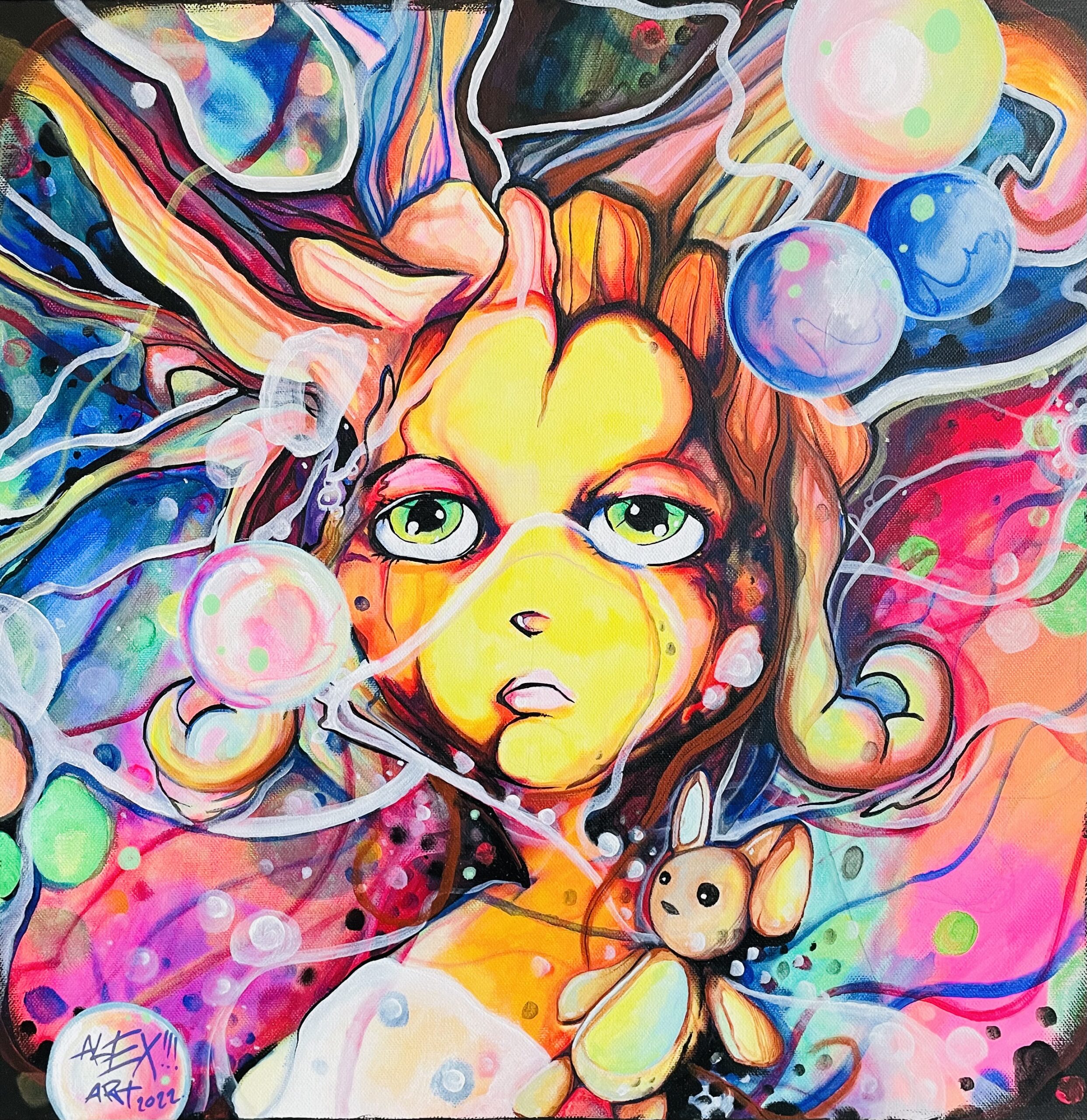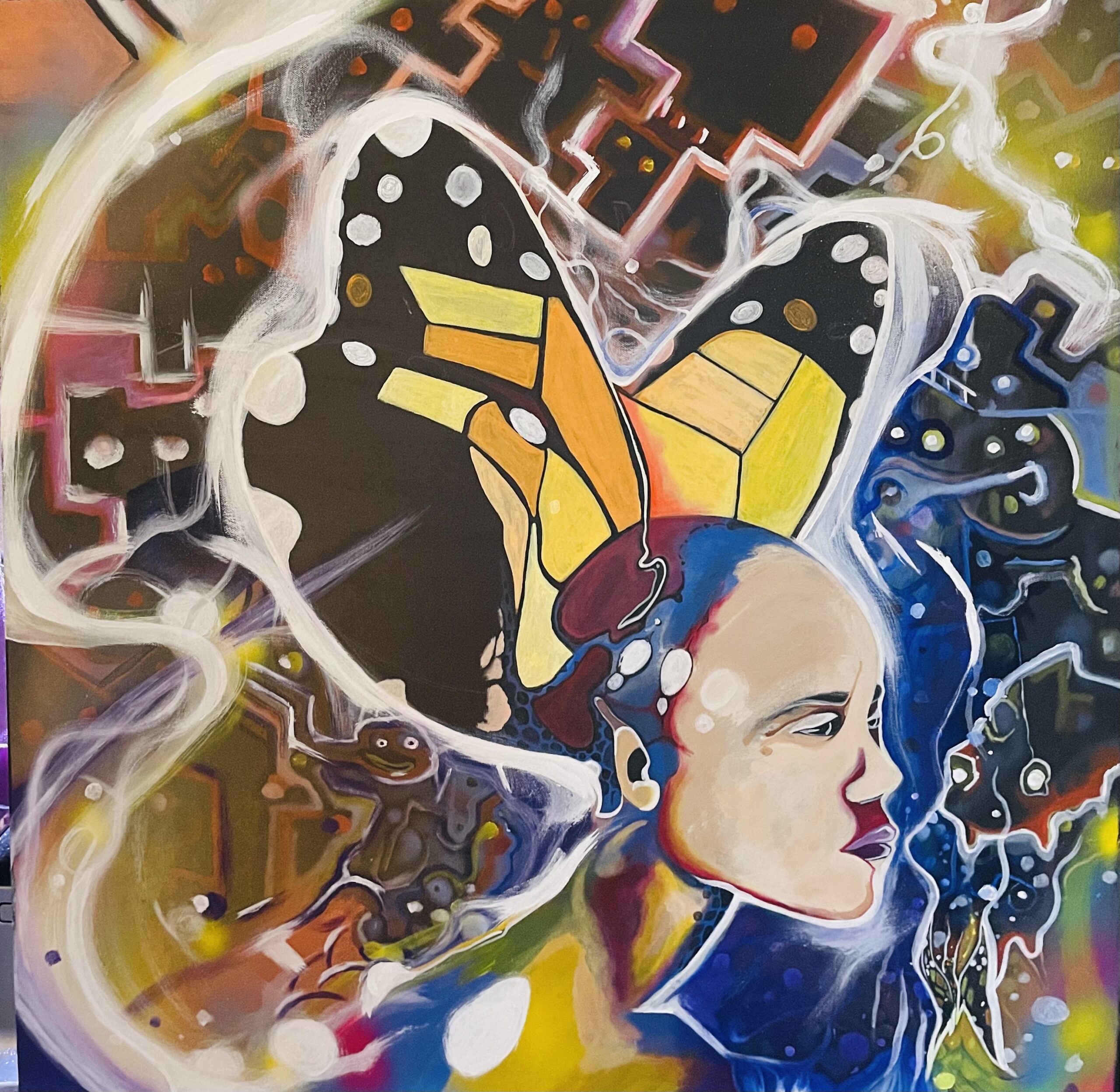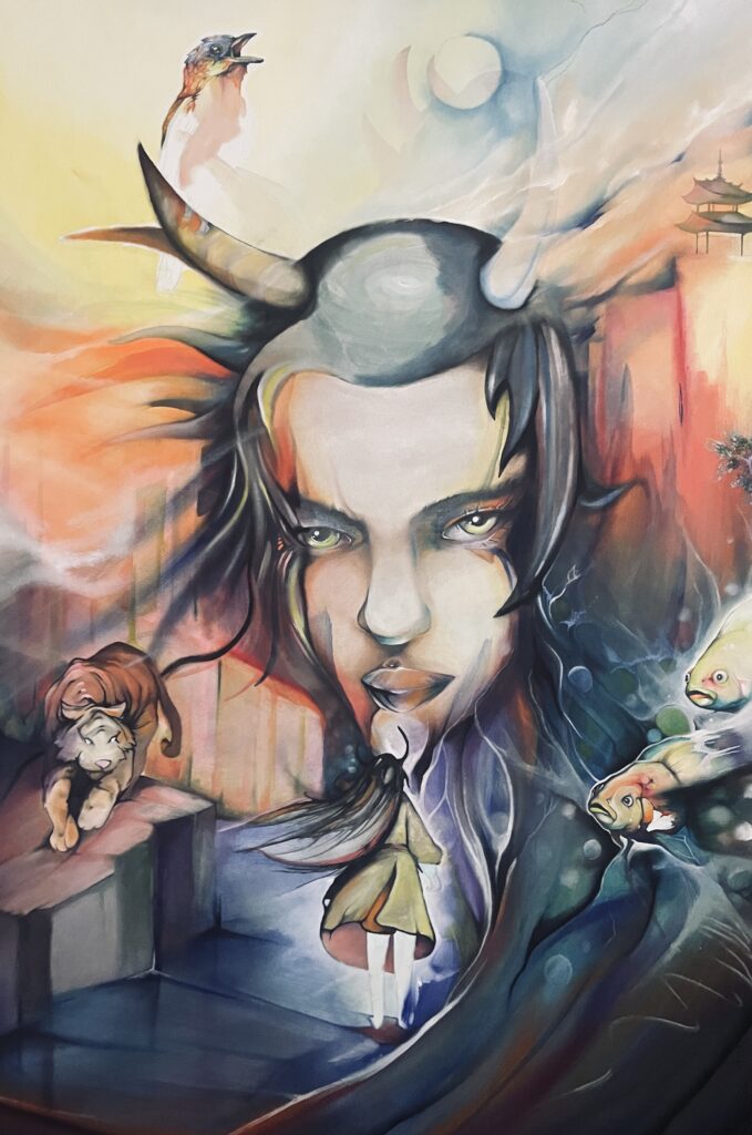 Tableau à l’huile créa 2025 la fille des énergies enfant des éléments… Tableau en cours de réalisation. Grand format