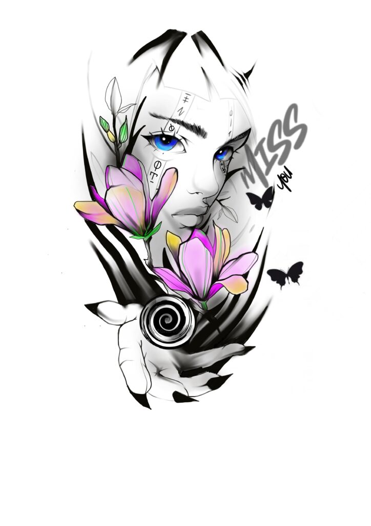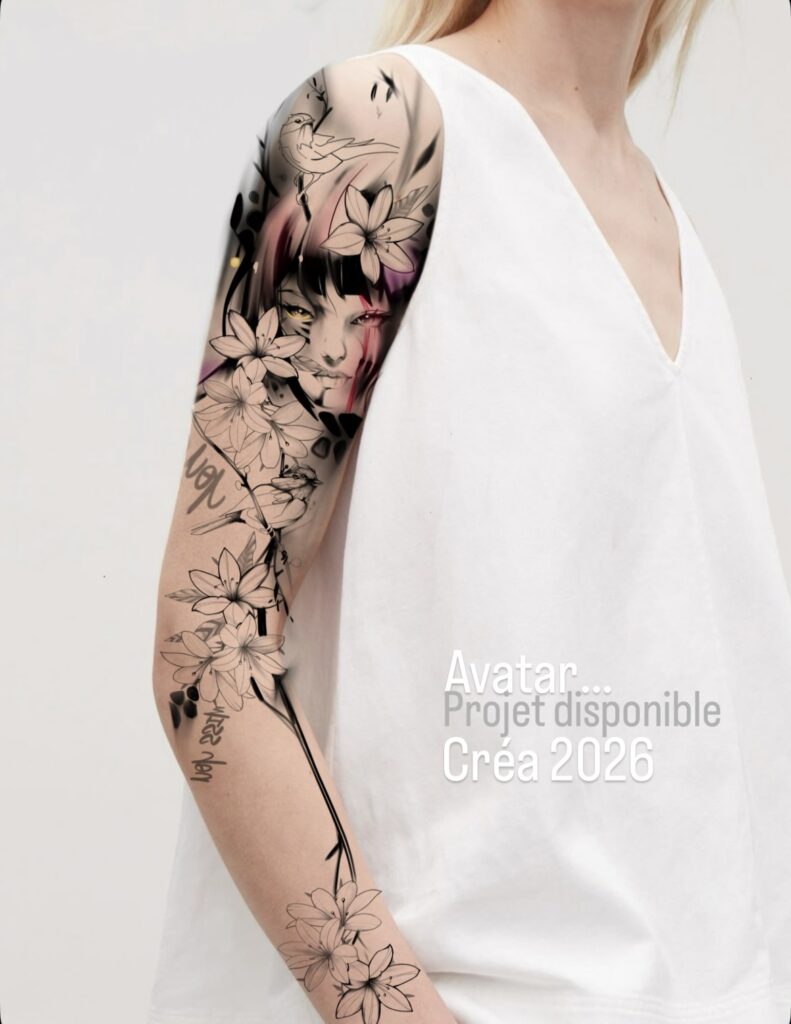 Projet tatouage disponible visage féminin et son dragon plus lettre chinoise ( Love ). Certains dessins ne sont pas terminé afin de protéger mes images.