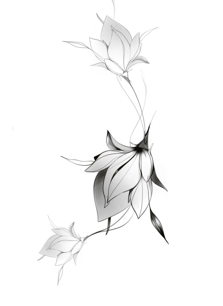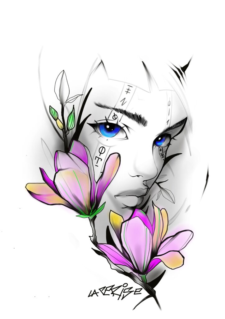 Projet disponible visage féminin et floral noir et gris et couleur ( exemple ).